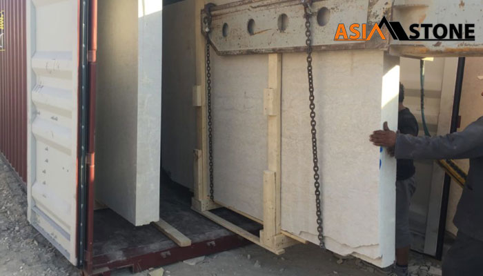 Trải qua quá trình được đánh bóng bề mặt, các tấm đá granite được đóng gói thành từng kiện hàng bao gồm từ 6 đến 7 tấm cho mỗi bó. Thiết bị di chuyển đá granite như cần cẩu, máy nâng,máy kéo được sử dụng để kéo và nâng những khối đá granite thô khổng lồ này vào xe tải hạng nặng, sau đó được vận chuyển đến các cơ sở cắt tấm và gia công.